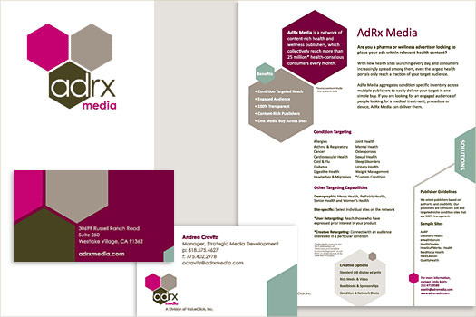 ![]() AdRx Media Logo Design Corporate Identity System Design Collateral Design Web Site Design & Development AdRx Media is a newly launched online advertising network, targeting health and wellness advertisers and publishers. |