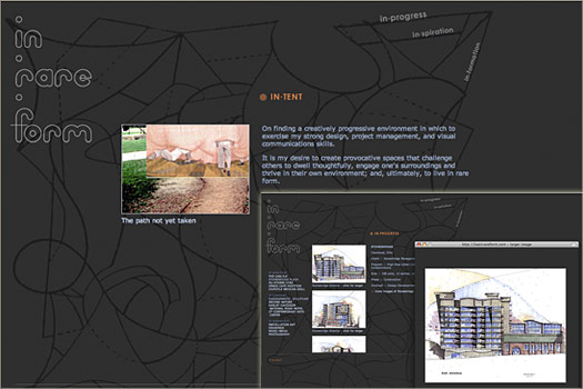 ![]() In . Rare . Form Web Site Design In.Rare.Form is a boutique architecture design firm, specializing in residential and commercial design. This site showcases the architect's projects, recent work, and creative vision. |