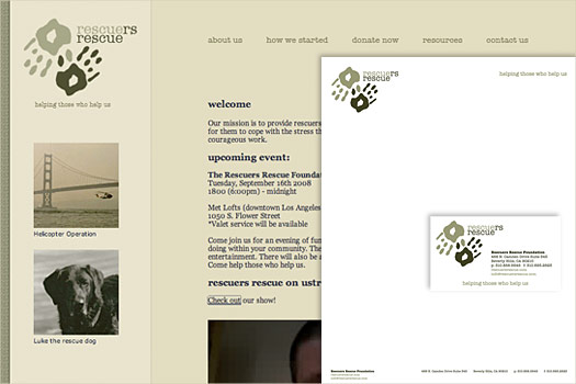 ![]() Rescuers Rescue Logo Design Corporate Identity System Design Web Site Design Rescuers Rescue is a non-profit organization providing resources for rescue workers to cope with daily stresses. |